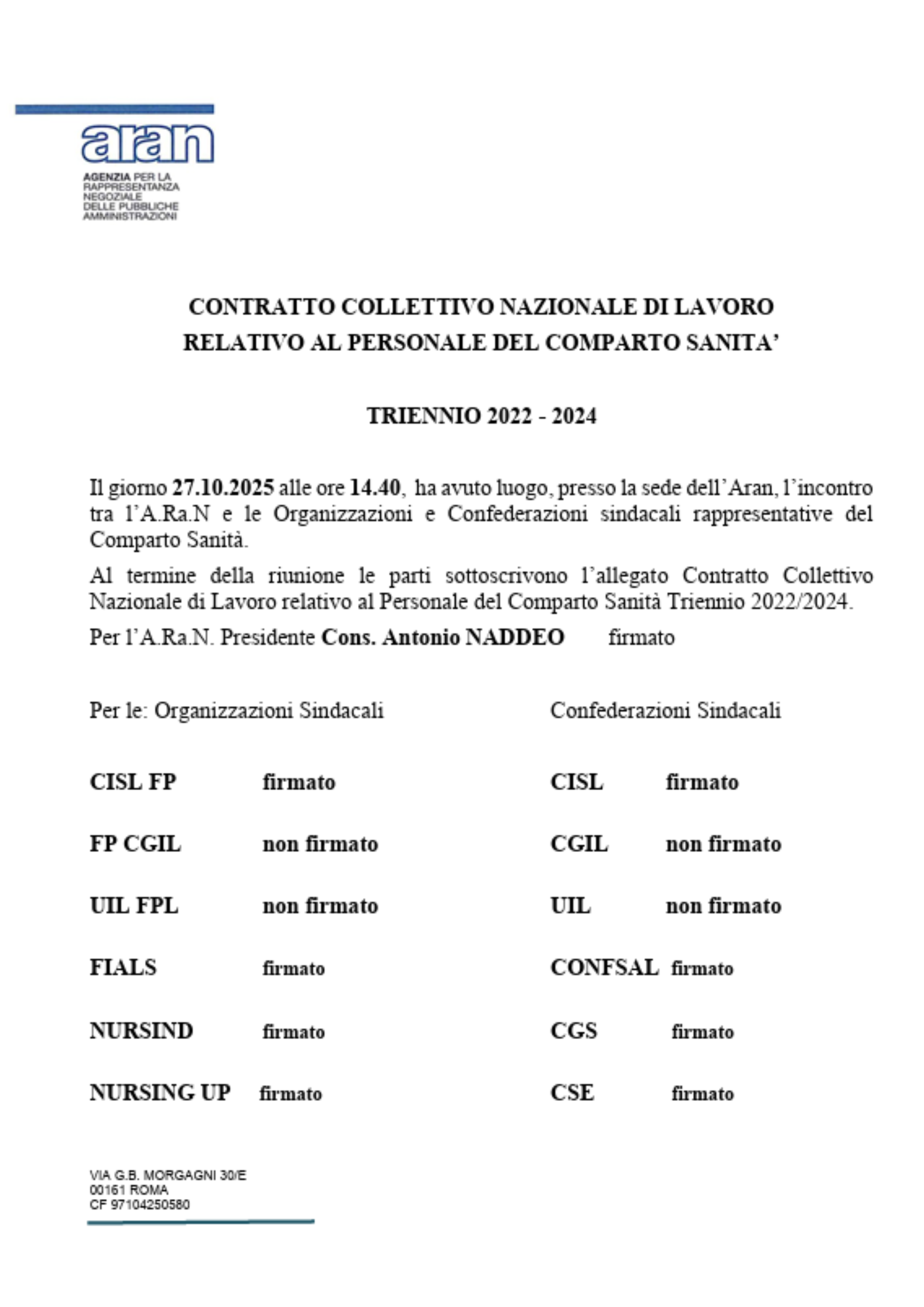 - CCNL comparto sanità 2022-2024 firmato | ARAN > leggi