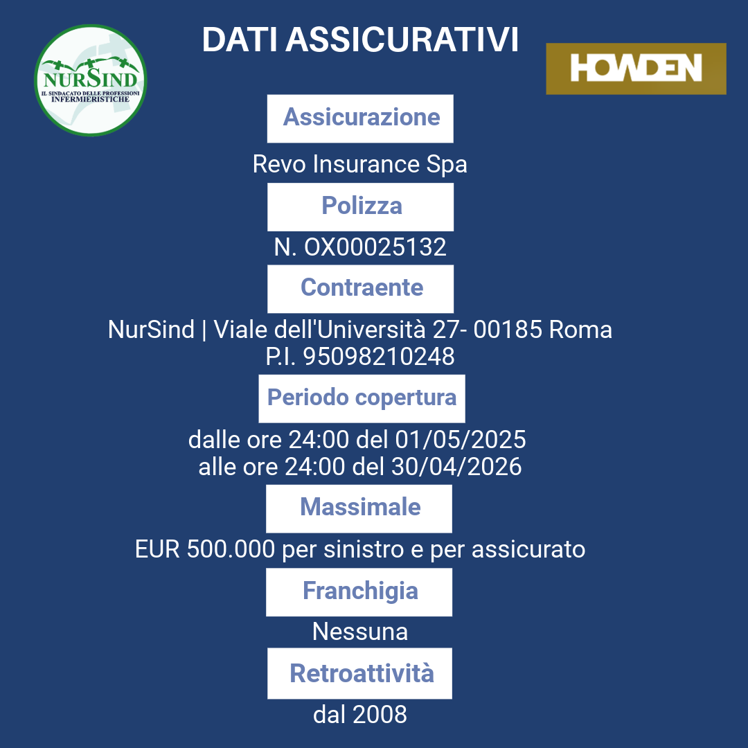 Il NurSind, con l’intermediazione di Howden Assiteca S.p.a, ha sottoscritto una polizza per Colpa Grave per assicurare tutti gli iscritti che lavorano presso strutture pubbliche o private, con qualsiasi inquadramento.