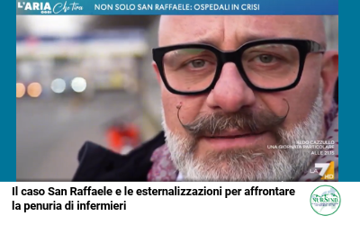 Il caso San Raffaele e le esternalizzazioni per affrontare la penuria di infermieri. I delegati Nursind, Giorgio Filippini e Luigi Rinaldi, in questo servizio di Simone Bauducco per L’aria che tira su La7, mettono in fila i numeri della carenza – la struttura in un anno ha perso circa 150 professionisti-, mentre Donato Cosi, coordinatore NursindLombardia, avverte: “Il caso San Raffaele è solo la punta dell’iceberg, potrebbe succedere anche in altre aziende, sia pubbliche sia private” col rischio connesso di non garantire “una tutela dell’assistenza per via di appalti molto spesso fatti al ribasso”.